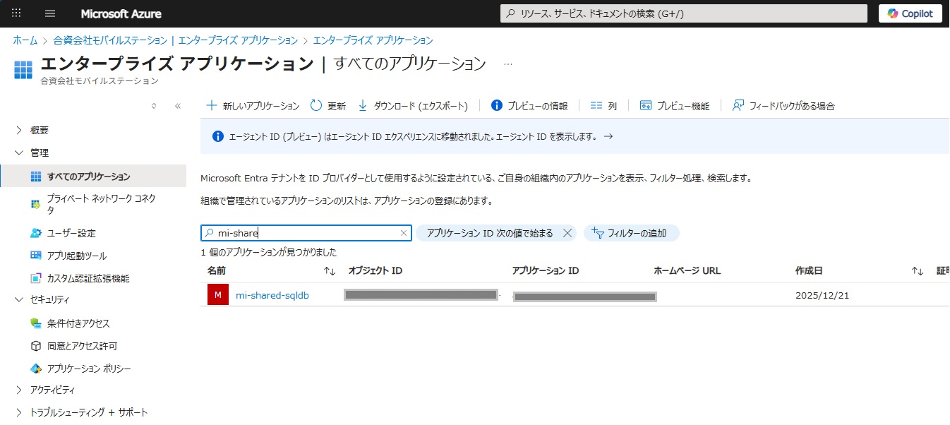 「マネージド ID」を作成すると、自動的に「エンタープライズアプリケーション」(サービス プリンシパル)が同じ名前で作成される。これは、「アプリの登録」を作成した場合と同じ動作。